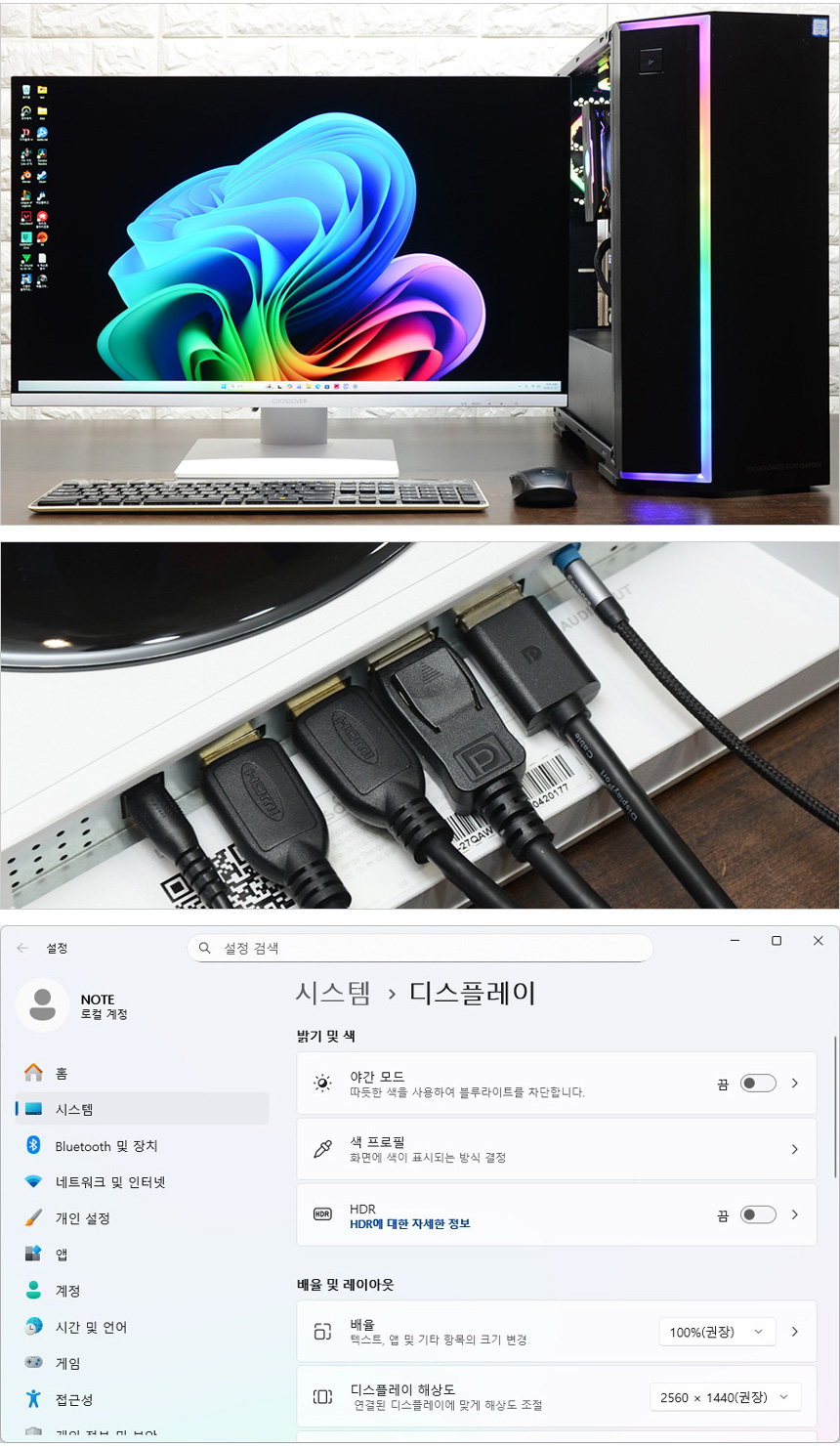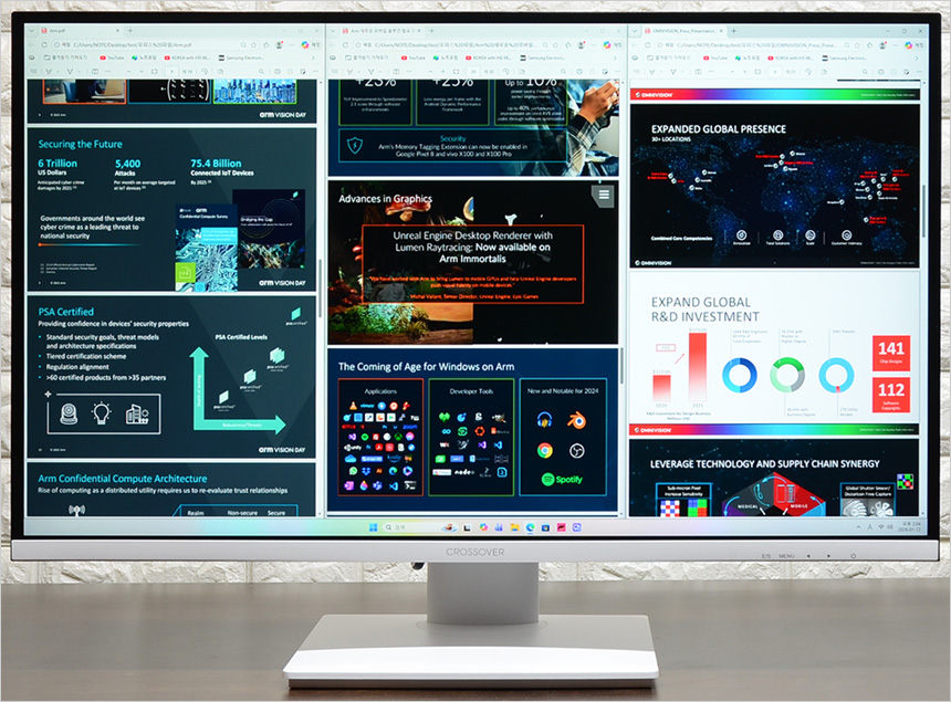 리뷰를 진행한 크로스오버 27QAW995 Fast-iPS WQHD 화이트 Ai게이밍 멀티스탠드 는 일반적인 게이밍 모니터와 분명히 다른 모습을 보여주었다. QHD 해상도를 지원해 디테일이 상당히 뛰어날 뿐만 아니라 10억 7천만 컬러에 높은 색 재현력 지원으로 살아있는 컬러를 경험할 수 있었다. 보통 게이밍 모니터를 작업용으로는 적합하지 않은데 반해 이 제품은 작업용 모니터 수준의 스펙을 가지고 있어 사진편집이나 디자인, 영상편집 등 다용도로 활용할 수 있다.