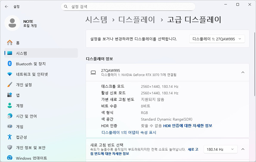 QHD 고해상도를 지원해 2개 정도의 창을 띄어두고 작업할 수 있는 FHD 모니터와 달리 2.5~3개의 창을 띄어두고 사용할 수 있다. (이 제품은 QHD 해상도에서 180이상의 프레임 이상으로 작동해야 하기 때문에 고성능 PC 사용은 필수라 할 수 있다. 특히 FPS 게임을 즐길 경우 고성능 그래픽카드를 사용하기 바란다.)