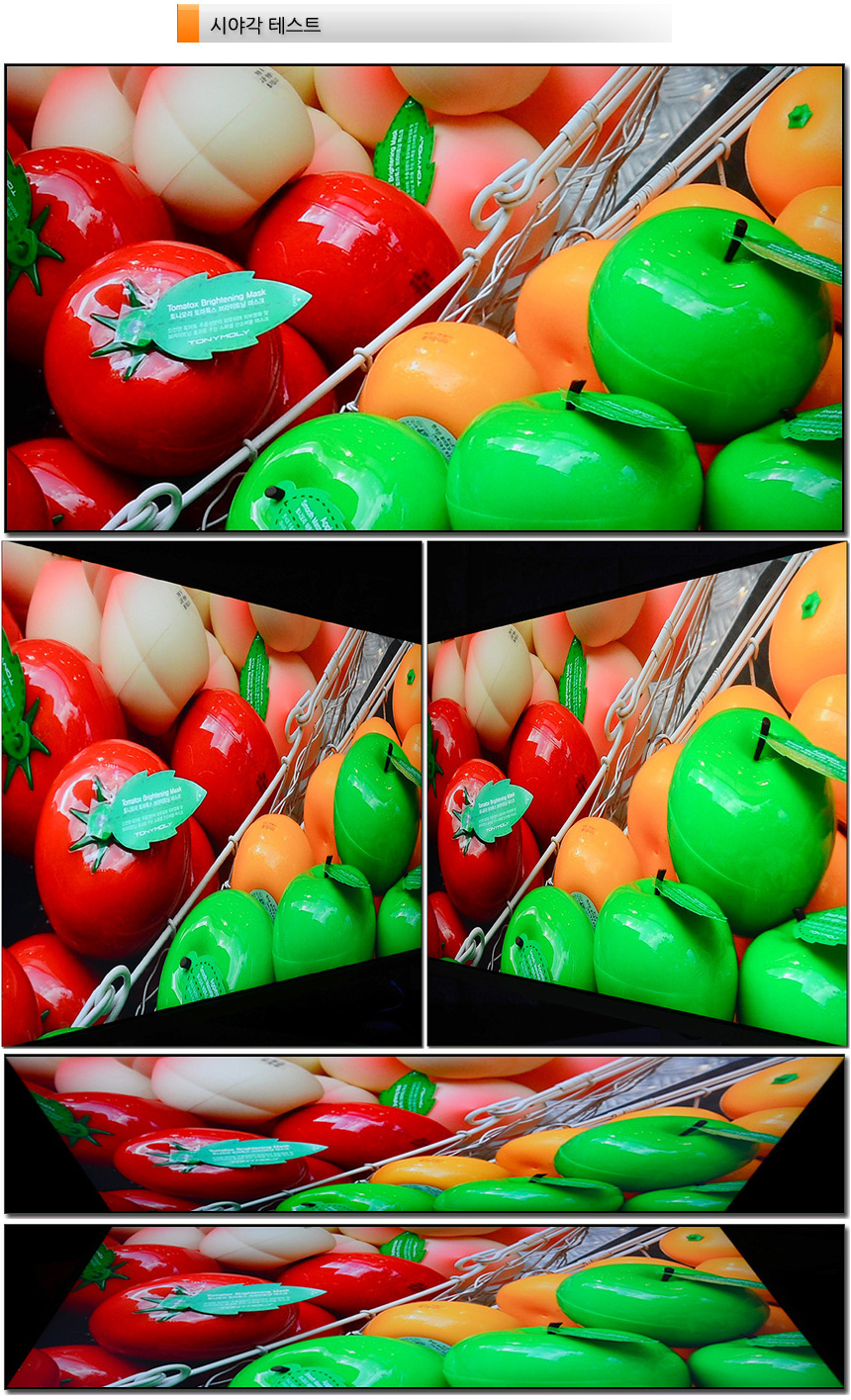 FAST IPS 패널을 탑재한 제품으로 시야각으로 인한 불편없이 영상을 즐길 수 있다. 상단의 사진은 시야각 테스트를 진행하고 있는 모습으로 극단적인 각도에서도 채도저하나 반전현상은 발생하지 않았다.