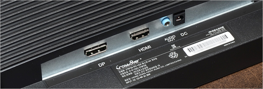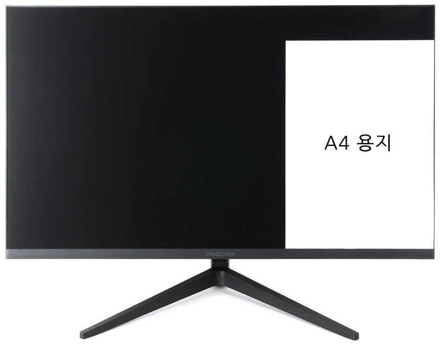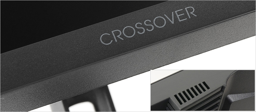 전면 하단부의 모습으로 중앙에 크로스오버 로고가 세겨져 있으며 하단에는 통풍구가 설치된 것을 확인할 수 있다. (참고로 스피커는 지원하지 않는다.) 크로스오버 279FG9 iPS-HDR 패스트144 게이밍은 유저들의 눈건강을 생각한 모델로 안티글레어 타입을 적용해 반사로 인한 스트레스를 최소화 했으며 블루라이트 감소와 플리커 프리 기술을 지원해 시력저하나 장시간 PC사용으로 인한 눈의 피로감을 최소화 한다.