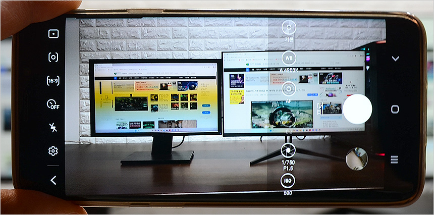 모니터 깜빡임으로 인한 눈의 피로를 최소화 하기 위해 플리커 프리 기술을 지원한다. 상단의 사진은 테스트를 위해 일반 모니터를 추가로 셋팅한 모습으로 눈으로 볼 때에는 큰 차이가 없는 것을 확인할 수 있다. 스마트폰을 이용하면 모니터의 플리커 현상을 확인할 수 있다. (카메라 메뉴에서 셔터스피드 1/300 이상으로 셋팅) 테스트용 모니터는 플리커 현상이 발생하는데 반해 크로스오버 279FG9 iPS-HDR 패스트144 게이밍은 깜빡임 없이 부드러운 영상을 재생해 주었다. (동영상에서 자세히 확인할 수 있다.)