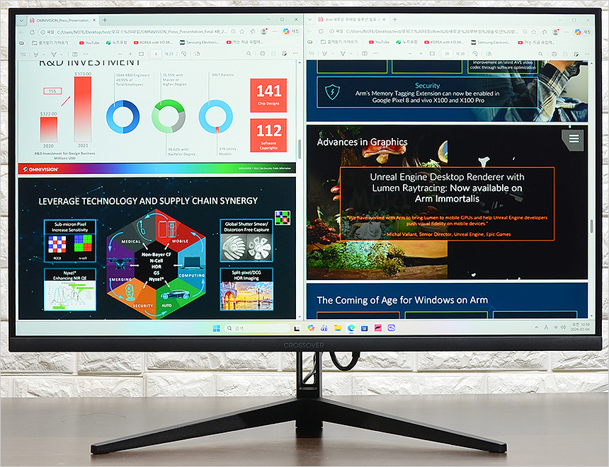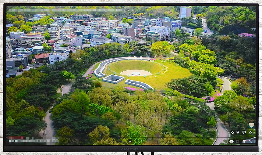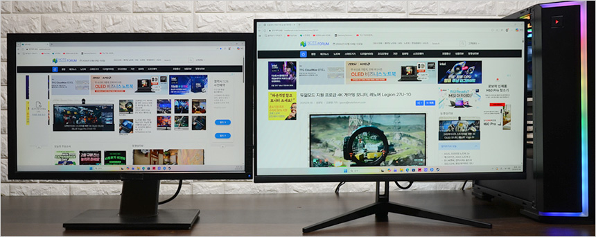 4K 해상도의 동영상을 이용해 멀티미디어 테스트를 진행하고 있는 모습으로 IPS 패널 특유의 밝고 선명한 영상을 즐길 수 있었다. 27형 대화면에 슬림베젤 탑재로 몰입감을 높인 모니터로 만족스럽게 고화질 영상을 즐길 수 있을 것이다.