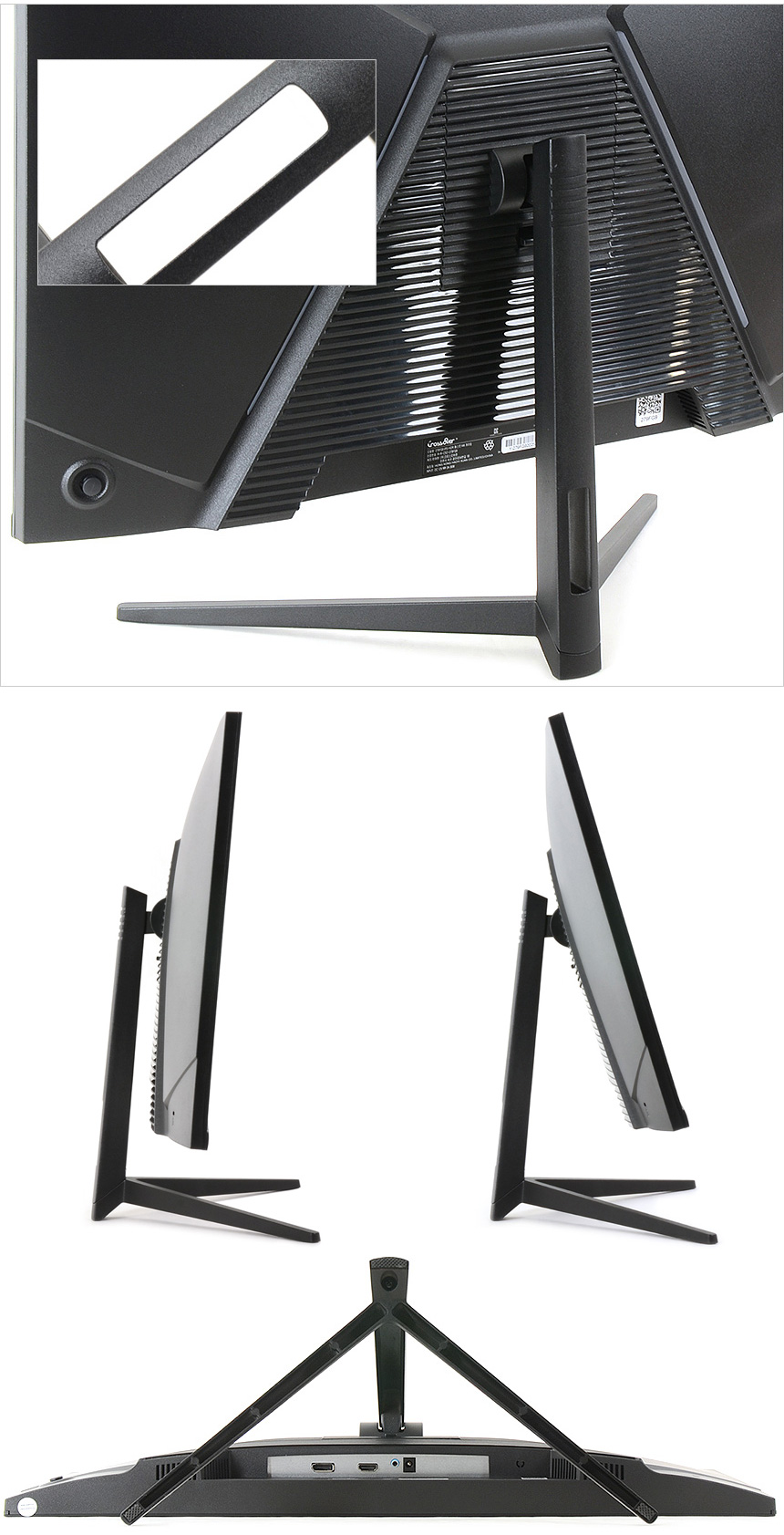스탠드의 모습으로 깔끔한 디자인이 돋보이며 바닥면에는 패드가 부착되어 미끄러짐을 방지한다. 또한 하단에 홀이 설치되어 케이블을 깔끔하게 정리할 수 있다. (틸트 기능을 지원해 사용자에 맞는 최적의 각도를 손쉽게 조절할 수 있다.)