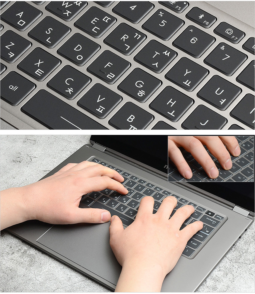 키보드 1열에는 밝기와 볼륨, 키보드 백라이트, 화면회전 등을 손쉽게 설정할 수 있는 다양한 핫키가 제공되며 전원 버튼에 지문인식 센서가 장착되어 보안성과 편의성을 높였다. (전원 버튼은 쉽게 눌리지 않도록 디자인 되었다.) 또한 팜래스트 중앙에는 멀티 터치패드가 장착되어 외부에서도 편하게 노트북을 조작할 수 있다. 특히 다양한 기능을 지원해 노트북을 더 편하게 사용할 수 있다. (자세한 사항은 동영상을 참조하기 바란다.)