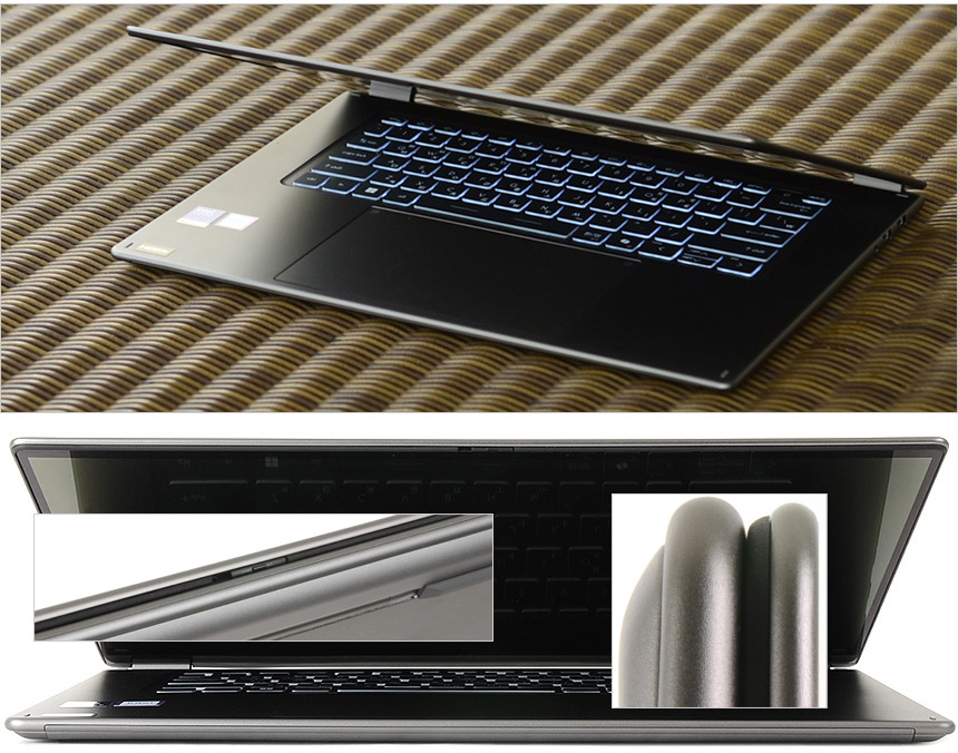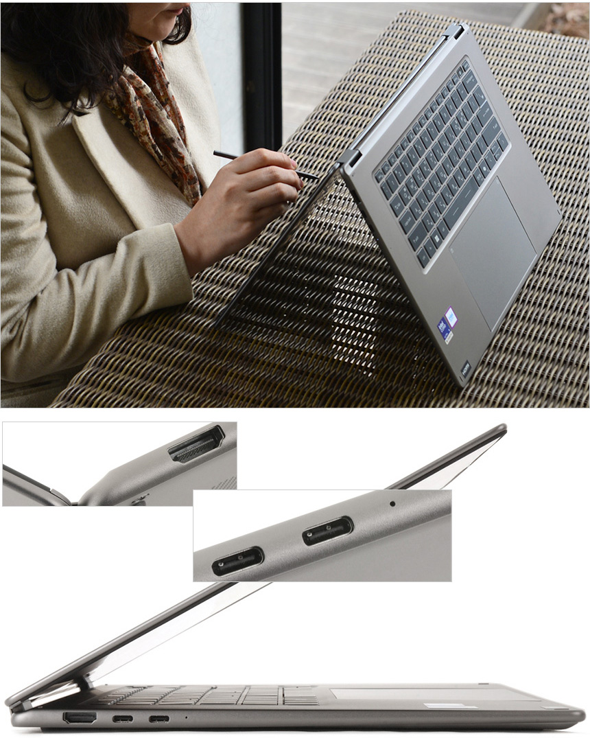 360도 회전 디스플레이가 탑재된 투인원 노트북으로 노트북 모드를 비롯해 스크린을 360도 뒤로 완전히 돌려 태블릿 모드로 사용할 수 있으며 키보드를 거치대 처럼 활용할 수 있는 스탠드 모드, 누워 있거나 앉아 있을 때 노트북을 거치하고 손을 프리하게 활용할 수 있는 텐트 모드 등 사용자의 환경에 따라 자유롭게 변신시킬 수 있다. (힌지 압력도 높은 편으로 중력으로 인해 상판이 내려오는 현상은 발생하지 않았다.)
