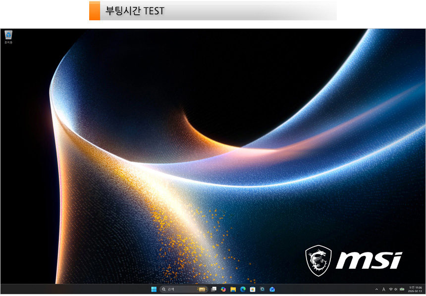 노트북이 완전히 꺼진 상태에서 전원 버튼을 눌러 바탕화면이 나올때 까지 (콜드 부팅) 의 시간을 측정했는데 14초가 소요된 것을 확인할 수 있었다. 기다림의 지루함 없이 노트북을 사용할 수 있을 것이다.