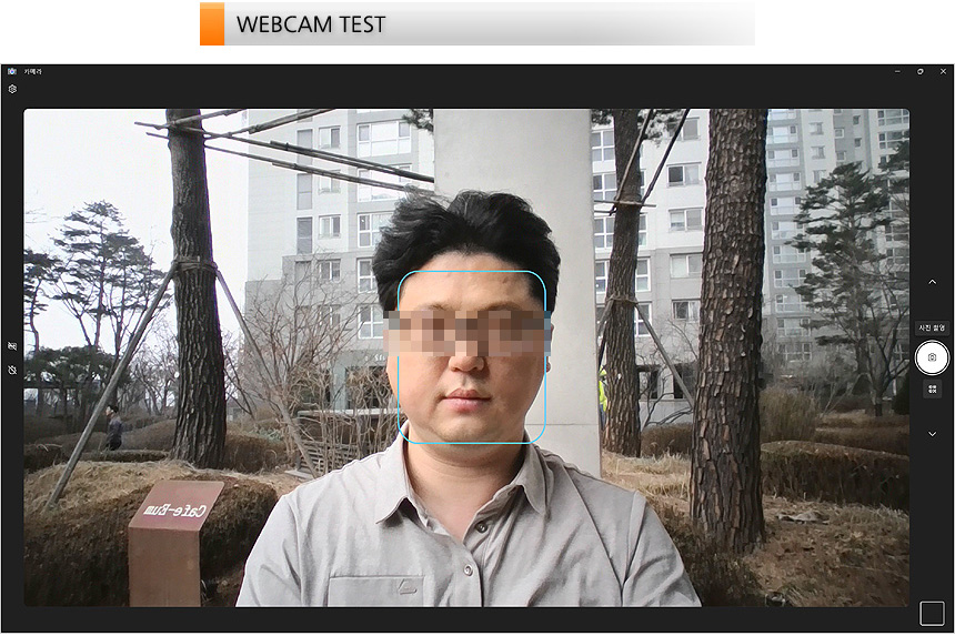 노트북에 장착된 FHD 웹캠의 화질을 확인하고 있는 모습으로 HD웹캠 기반의 일반 노트북과 확연히 비교되는 선명한 영상을 보여주었다. (디테일에서 분명한 차이를 보여주었으며 하이라이트가 날라가는 현상도 발생하지 않았다.) 화상회의는 물론 촬영 등의 용도로 유용하게 활용할 수 있을 것이다.