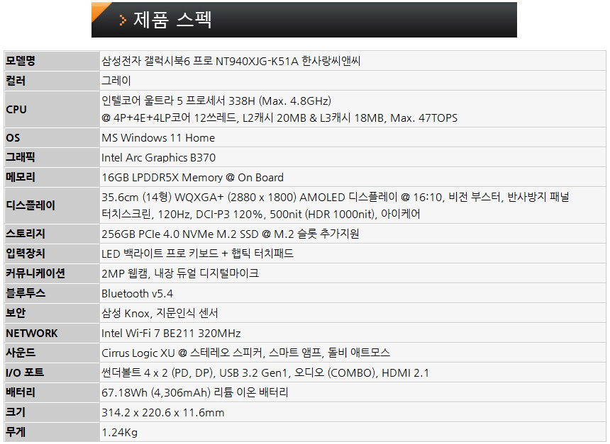 @ 삼성전자 갤럭시북6 프로 NT940XJG-K51A 한사랑씨앤씨 보러가기