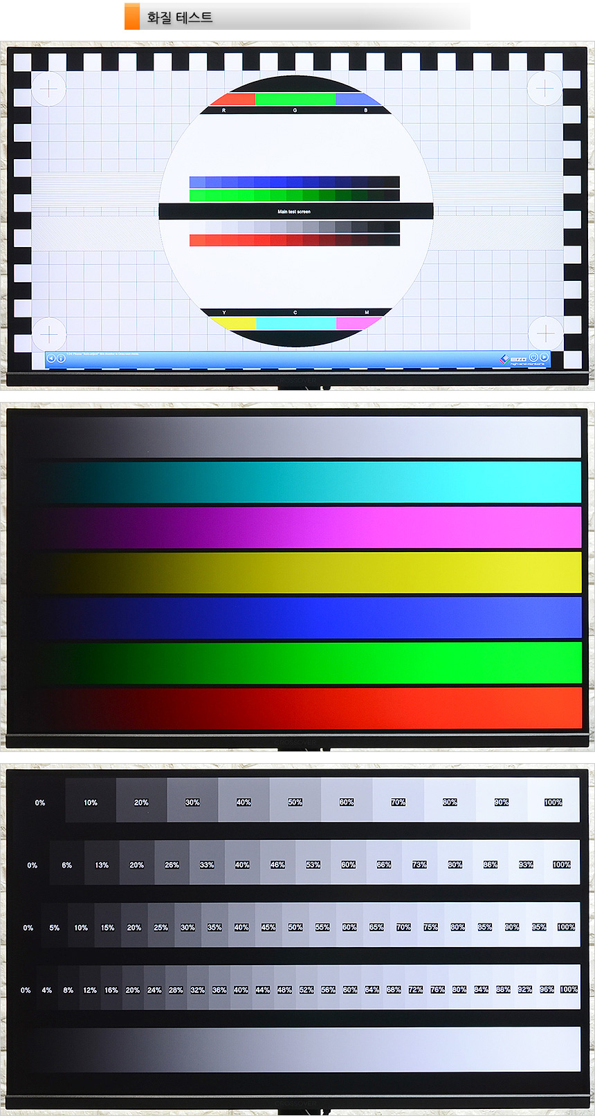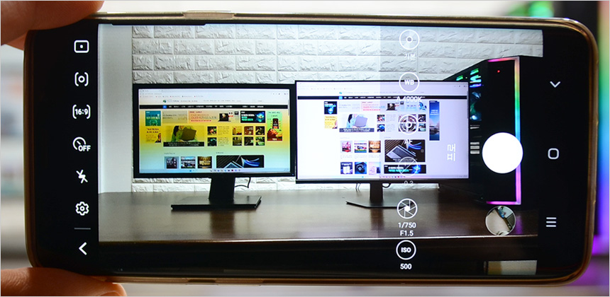 스마트폰을 이용하면 모니터의 플리커 현상을 확인할 수 있다. (카메라 모드를 프로로 설정하고 셔터스피드 1/300 이상으로 셋팅) 테스트용 모니터는 플리커 현상이 발생하는데 반해 크로스오버 27QM168C는 깜빡임 없이 부드러운 영상을 재생해 주었다. (동영상에서 자세히 확인할 수 있다.)