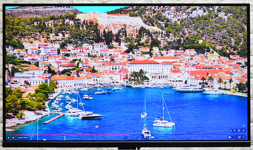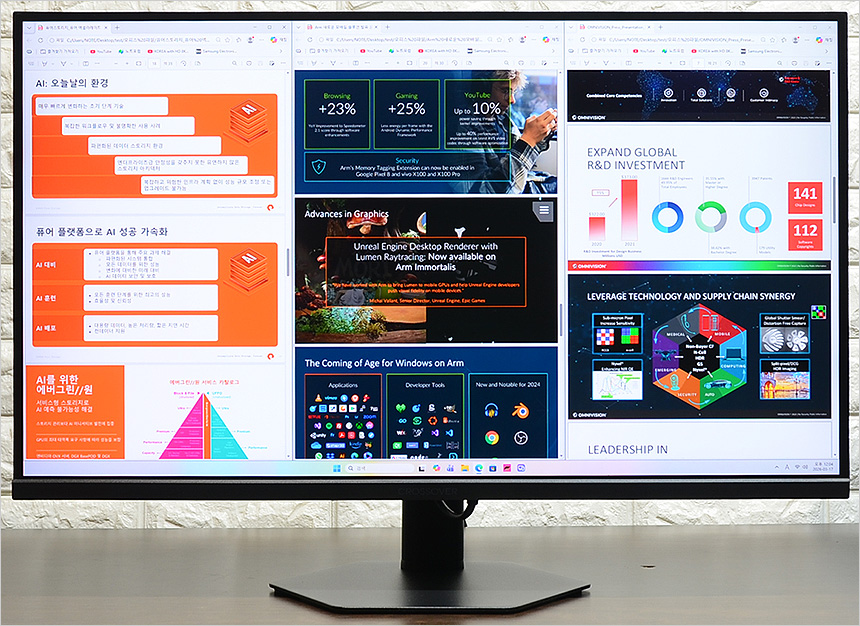 고화질 유튜브 동영상과 4K 동영상을 플레이 하고 있는 모습으로  IPS 특유의 깊이감 있는 컬러에 QHD 특유의 디테일이 더해져 만족스럽게 영상을 즐길 수 있다. 특히 27형 대화면에 슬림베젤 적용으로 탁 트인 시야감을 경험할 수 있으며 2개의 3W 스피커가 장착되어 시원시원한 사운드를 들려주었다.