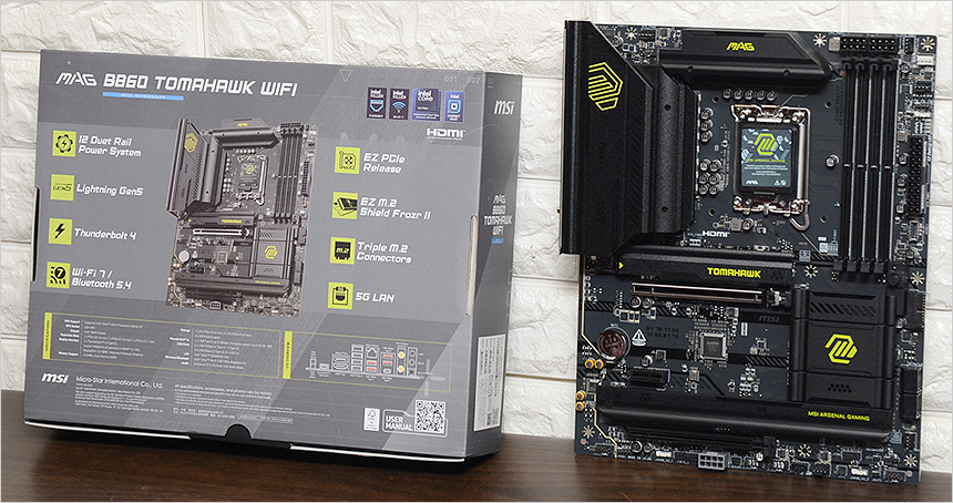 리뷰에 사용된 MSI MAG B860 토마호크 WIFI 메인보드는 인텔코어 울트라 K프로세서나 고성능 논K 프로세서를 위한 고급형 메인보드로 (테스트에 사용된 250K Plus 뿐만 아니라 270K Plus에서도 사용 가능하다.) 강력한 전원부를 지원하는 것은 물론 사용자 편의성을 높인 EZ DIY 설계, Wi-Fi 7 의 향상된 네트워크로 전작과는 확연히 다른 사용성을 제공한다.