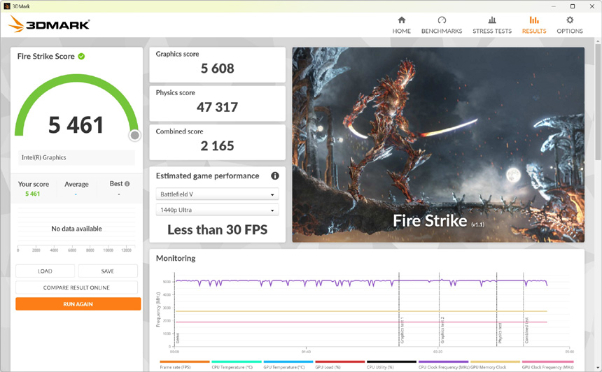 몬스터 헌터 와일드 벤치마크를 실행한 모습으로 4K 에서도 높은 프레임을 보여주었다. DLSS4를 적극적으로 활용할 수 있는 RTX 5060 Ti 정도의 그래픽카드를 사용한다면 훨씬 높은 프레임에서 게임을 즐길 수 있다.