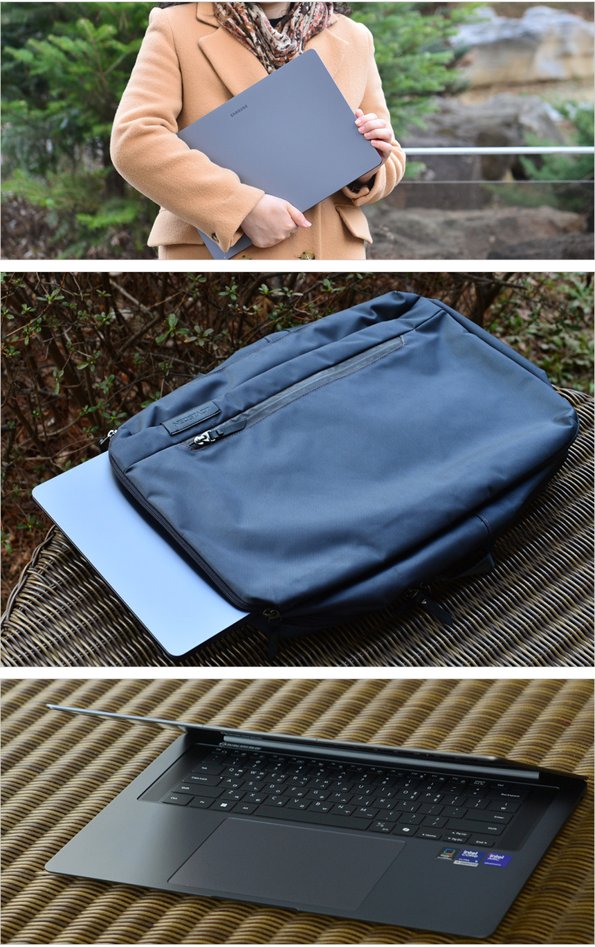 16형 대화면 노트북으로 크기가 상당하지만 3면 슬림베젤 적용으로 크기를 최소화 했을 뿐만 아니라 아주 날렵해 상단에서 언급한 것과 같이 서류가방 등에 편하게 넣고 다닐 수 있다. 특히 도입부에서 강조한 것과 같이 긴 배터리 사용시간을 지원할 뿐만 아니라 PD충전도 가능해 배터리 걱정없이 외부에서 사용할 수 있다.