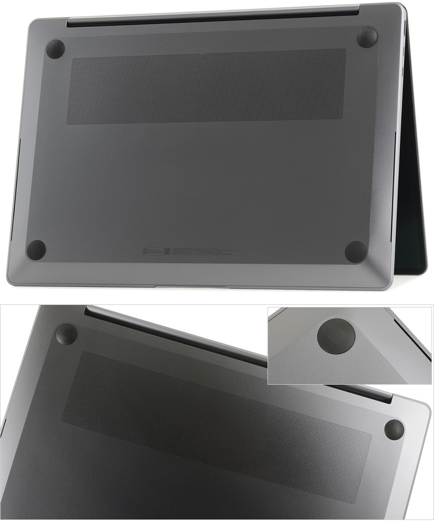 바닥면의 모습으로 사방에 고무패드가 부착되어 미끄러짐을 방지하며 칩셋과 팬이 설치된 상단부에는 효율성을 높이기 위해 통풍구가 설치된 것을 확인할 수 있다. @ 전원설정을 균형모드 (밝기 50%, 에어플레인 모드, 저소음 모드, 60Hz) 로 지정하고 슬라이드쇼를 무한 반복해 본 결과 32시간 36분 동안 재생된 후 시스템 대기모드로 진입했다. 또한 노트북을 끄고 1시간 동안 충전했을 때 70% 배터리가 충전되는 것을 확인할 수 있었다.