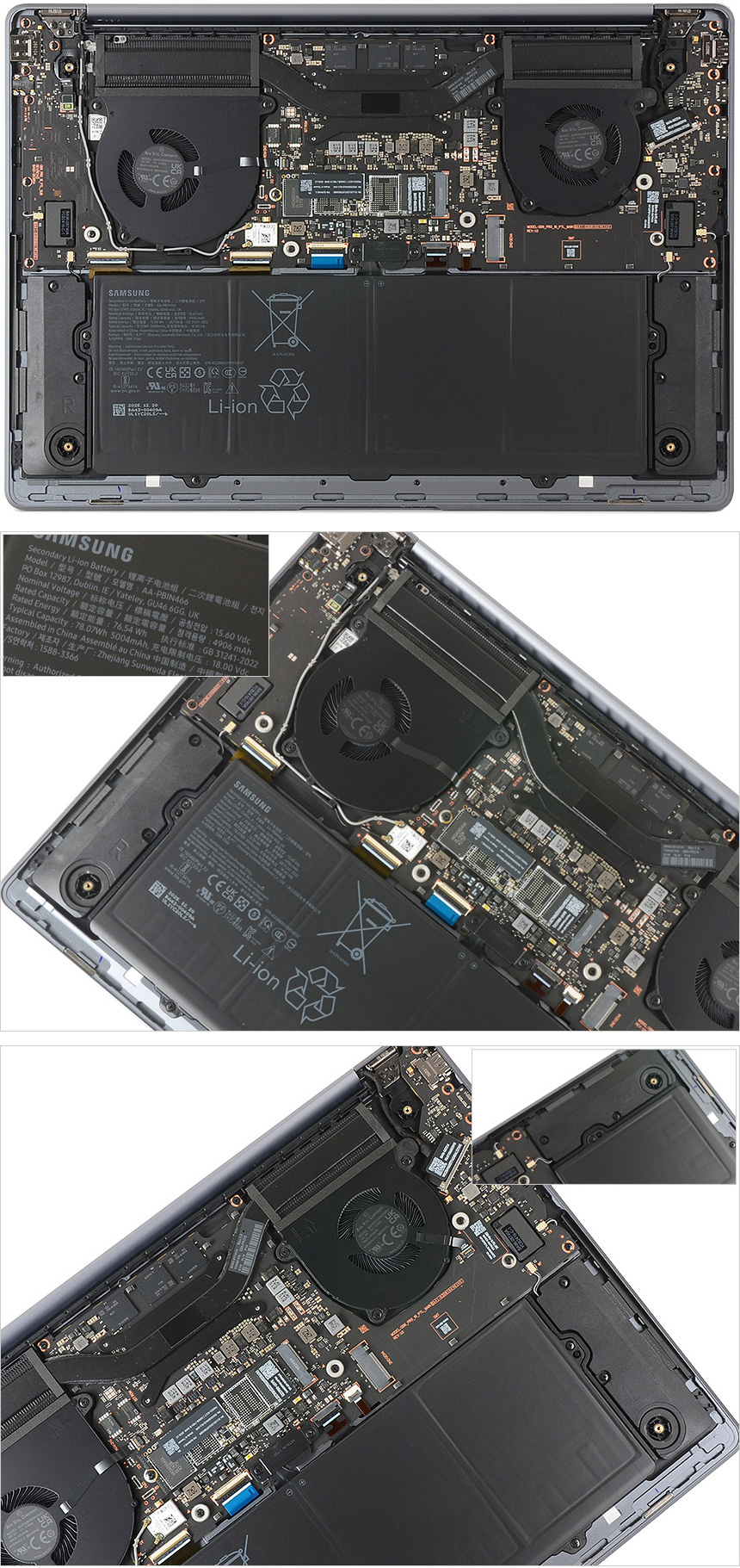 내부의 모습으로 듀얼팬과 방열판 등이 설치된 것을 확인할 수 있으며 하단에는 78.07Wh (5004mAh) 리튬이온 배터리가 설치되어 있고 마그네틱과 스피커가 장착된 것도 알 수 있다. 16GB LPDDR5X 메모리가 장착되어 있고 PCIe 4.0 기반의 256GB NVMe SSD 등이 설치되어 빠른 데이터 전송속도를 경험할 수 있으며 여분의 M.2 슬롯 지원으로 여유롭게 데이터를 저장할 수 있다. 뿐만 아니라 인텔 Wi-Fi 7 무선랜을 지원해 고속 무선속도를 즐길 수 있으며 블루투스 무선연결이 가능하다.