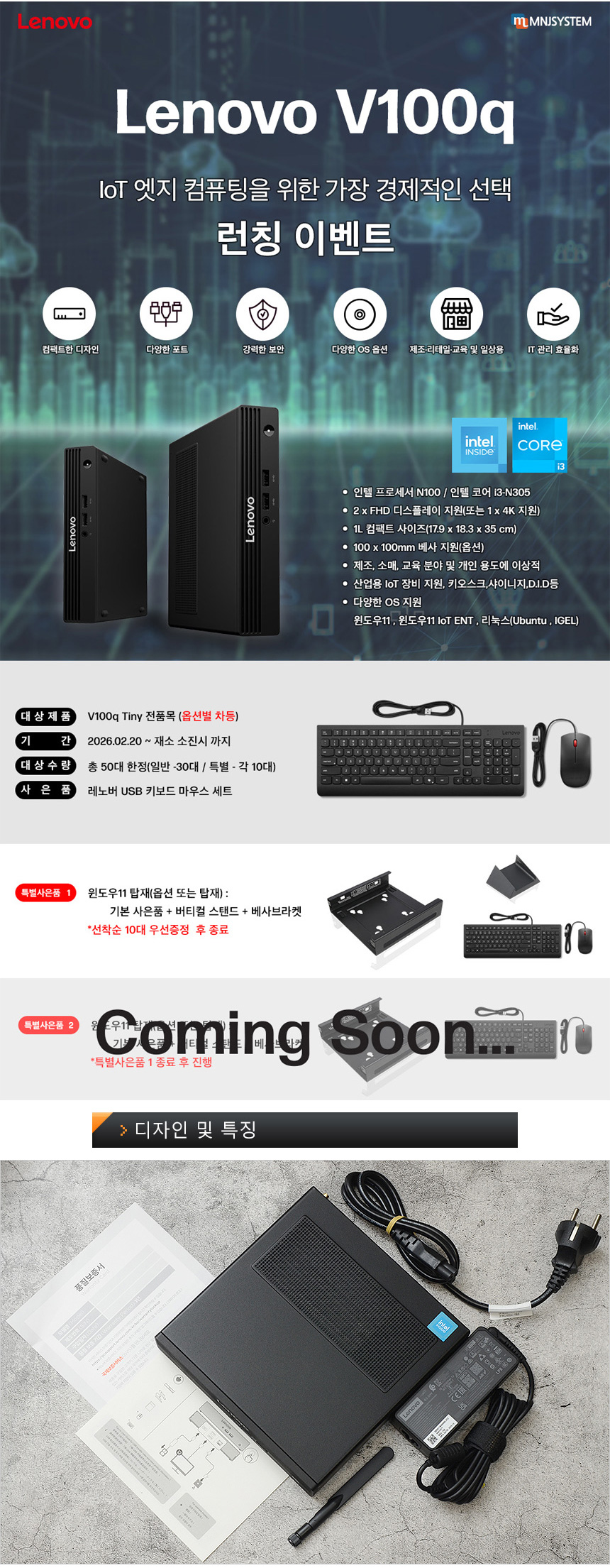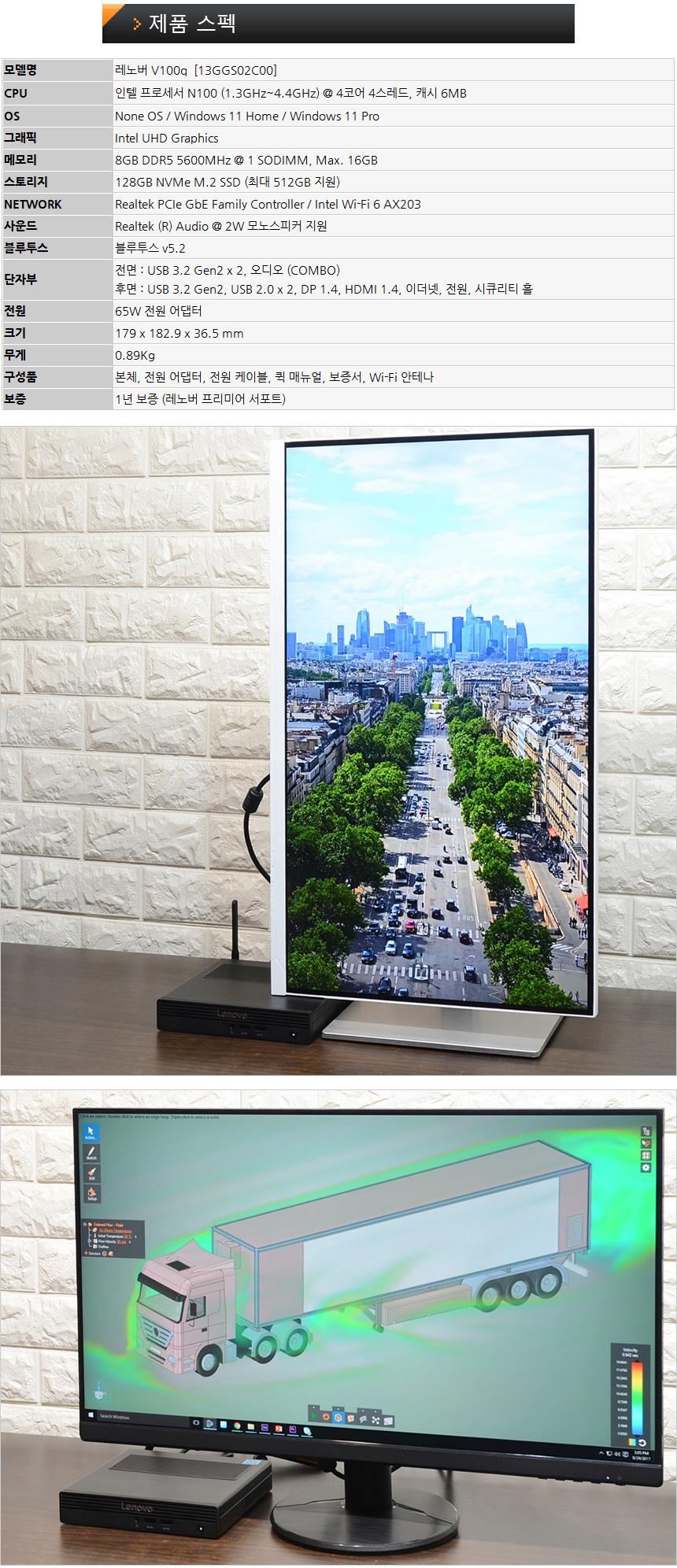 산업현장과 캐주얼한 작업에 특화된 미니PC, 레노버 V100q 13GGS02C00