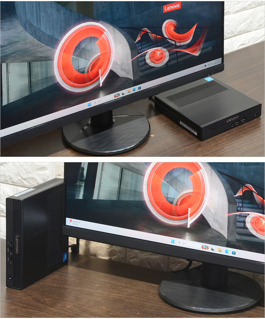 모니터 스탠드 부분에 있는 여유공간에 PC를 설치하면 전혀 책상공간을 차지하지 않으며 전면에 있는 USB 단자나 오디오 단자를 쉽게 사용할 수 있다. 또한 스탠드도 기본 제공해 세워서 사용하면 더 공간을 절약할 수 있다. (참고로 버티컬 스탠드는 옵션으로 판매되고 있다.) 크기 때문에 책상에 설치하지 못하고 바닥에 놓아야 하는 일반 데스크탑PC와 확연히 다른 공간 활용성을 경험할 수 있을 것이다.