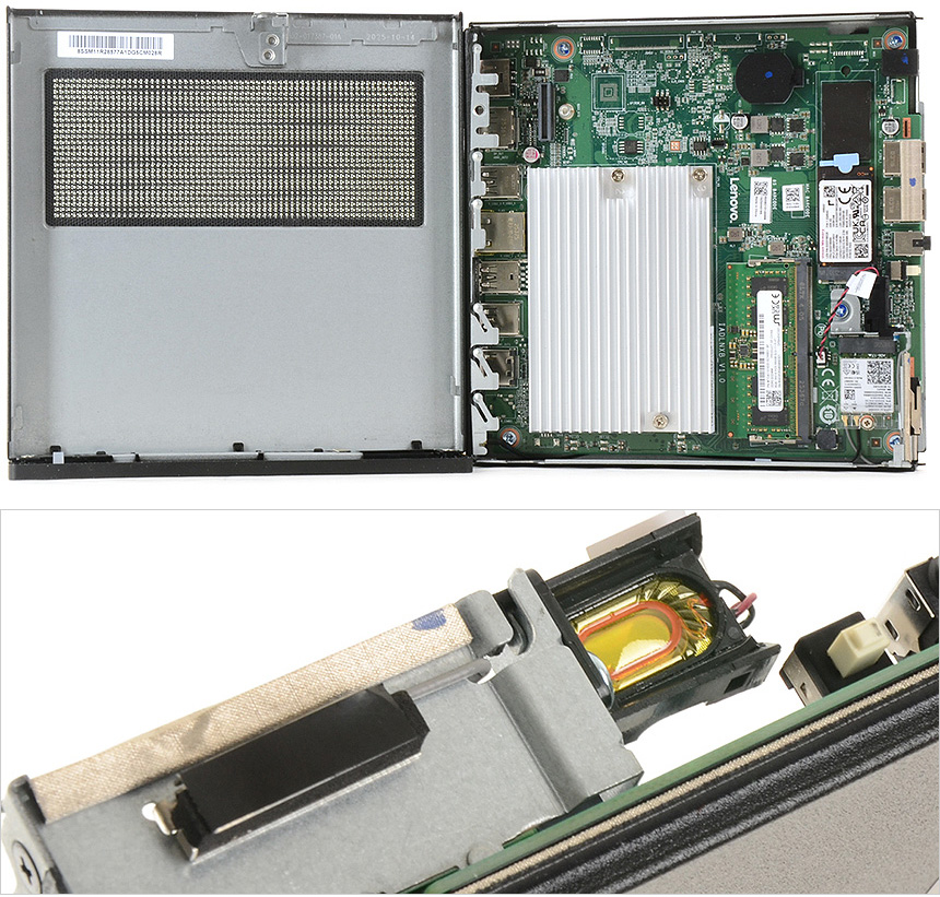팬이 설치된 대부분의 PC와 달리 팬리스 설계를 적용한 것이 눈에 띈다. (저전력 CPU를 탑재한 제품으로 히트싱크 만으로도 충분히 열을 제어할 수 있다.) 팬소음이 발생하지 않기 때문에 정숙을 요하는 장소에서 특히 유용하게 활용할 수 있다.