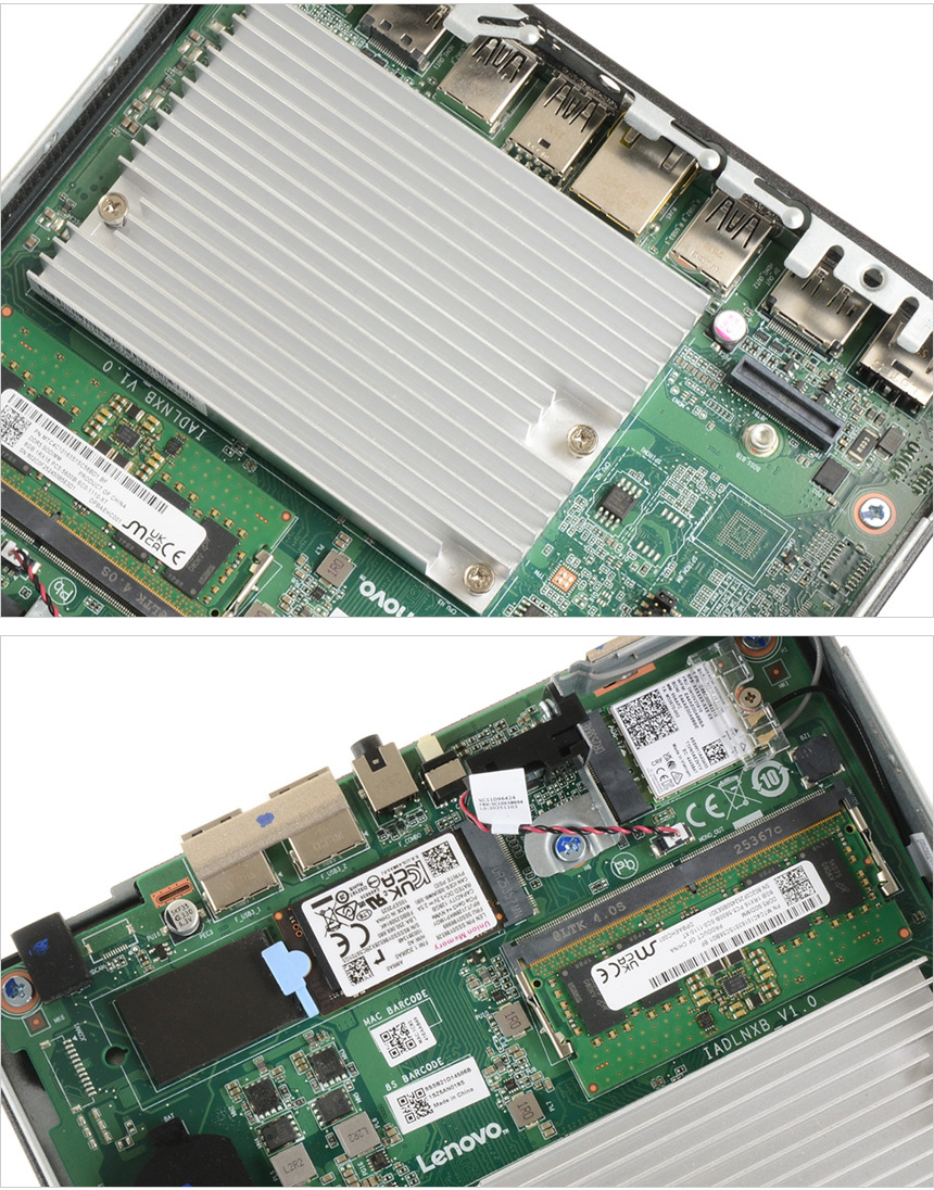8GB 의 DDR5 메모리와 128GB NVMe SSD 가 장착되어 있고 인텔 Wi-Fi 6 무선랜카드가 설치되어 무선랜과 블루투스 기능을 활용할 수 있다. 또한 상단에 말씀드린 확장카드 슬롯이 설치된 것도 눈에 띈다.