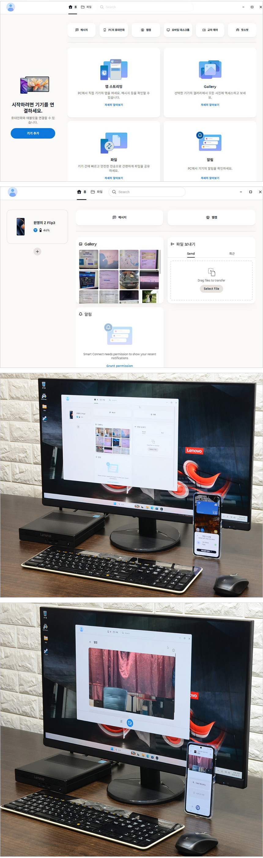 PC와 스마트폰을 하나의 생태계로 연결해 주는 애플리케이션 스마트 커넥트를 지원한다. 기기간 파일전송, 메시지 확인이 가능해 편하게 스마트폰을 관리할 수 있다. (스마트폰에도 앱이 설치되어 있어야 하며 QR코드를 스캔해 두 기기를 연결할 수 있다.)