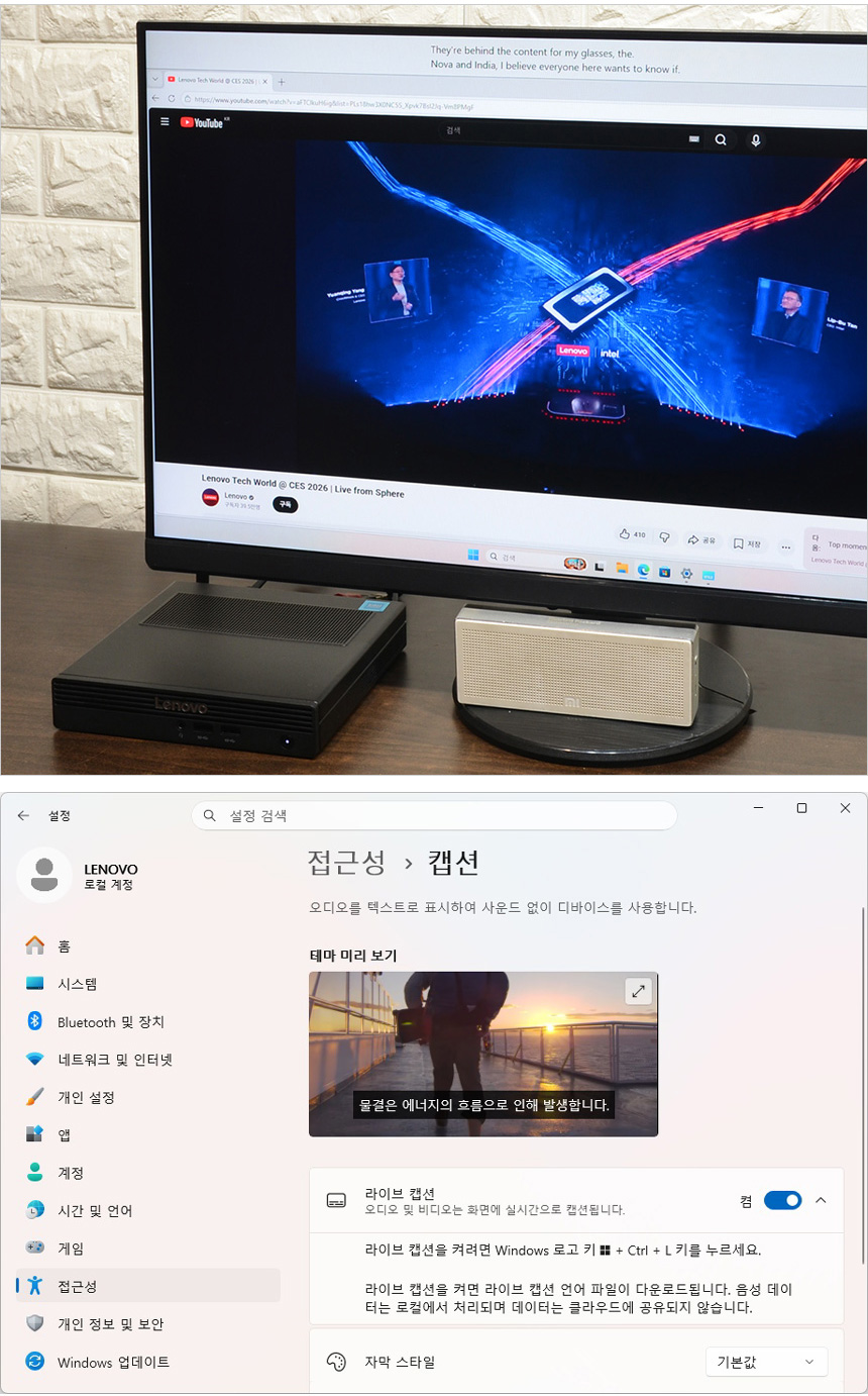 AI 가 음성을 텍스트로 변환해 주는 라이브 캡션 기능을 사용할 수 있다. 다양한 언어의 오디오 자막을 텍스트로 표시해 주어 사무실 등에서 스피커나 이어폰을 사용하기 힘들 경우나 화상회의 에서 적극적으로 사용하기 바란다. (영어 뿐만 아니라 한국어도 지원한다.)