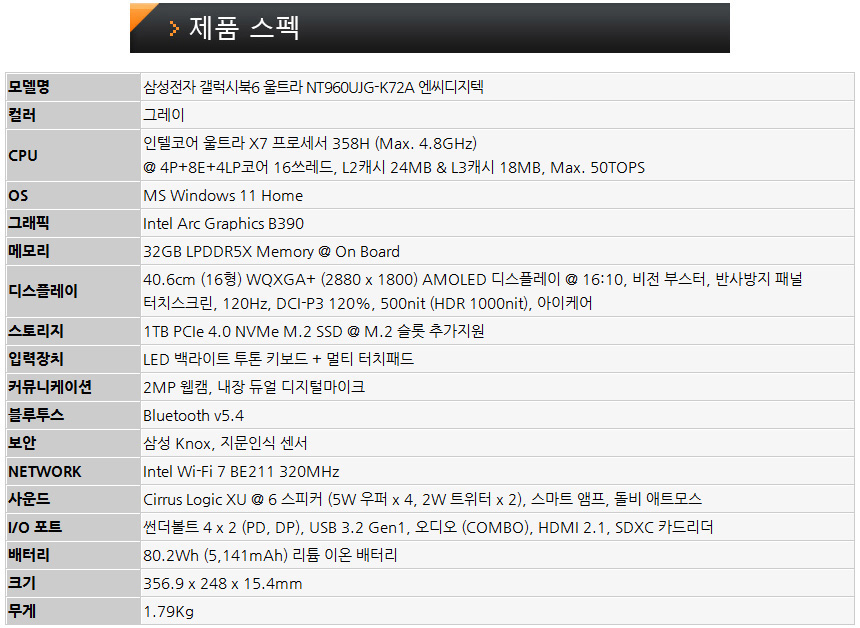 @ 삼성전자 갤럭시북6 울트라 NT960UJG-K72A 엔씨디지텍 보러가기