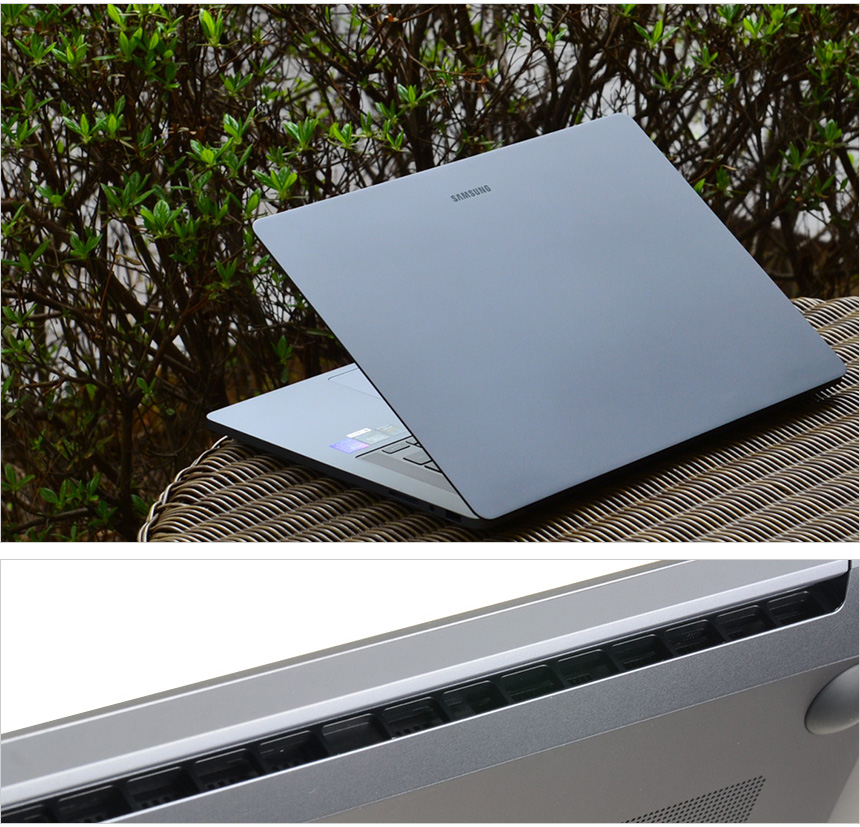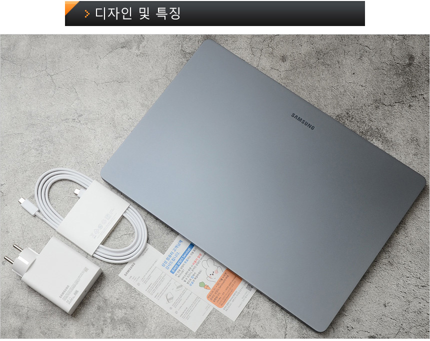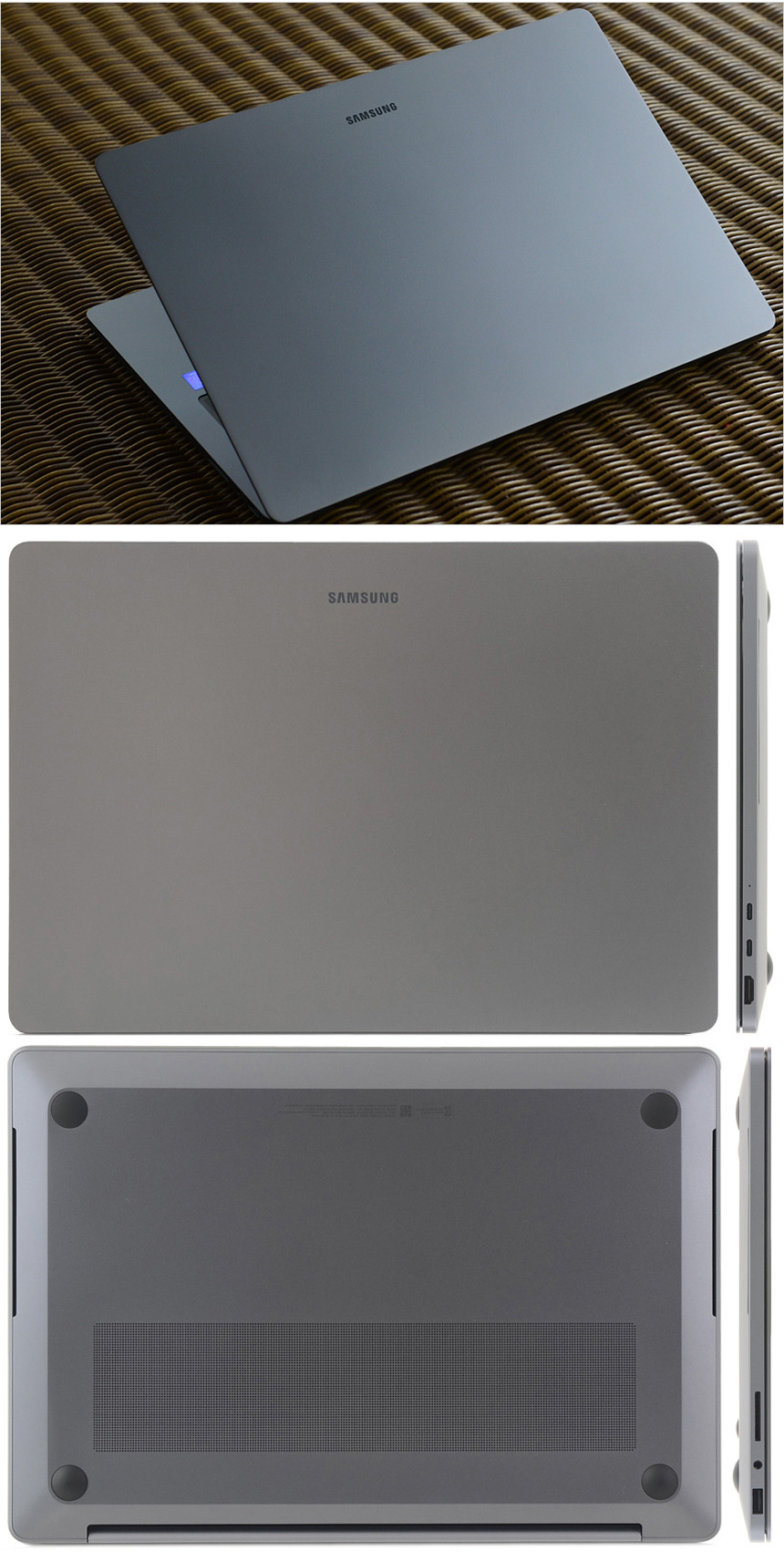 노트북의 디자인은 기존 갤럭시북 시리즈와 같이 심플하지만 멋스럽다. 전작과 달리 로고가 상단 중앙으로 이동했으며 쉽게 질리지 않는 그레이 컬러를 적용한 것은 눈에 띈다. 메탈 소재를 사용해 좋은 질감을 제공하는 것은 물론 높은 내구성을 구현하며 지문이나 먼지등이 쉽게 묻어나지 않아 편하게 노트북을 관리할 수 있다.