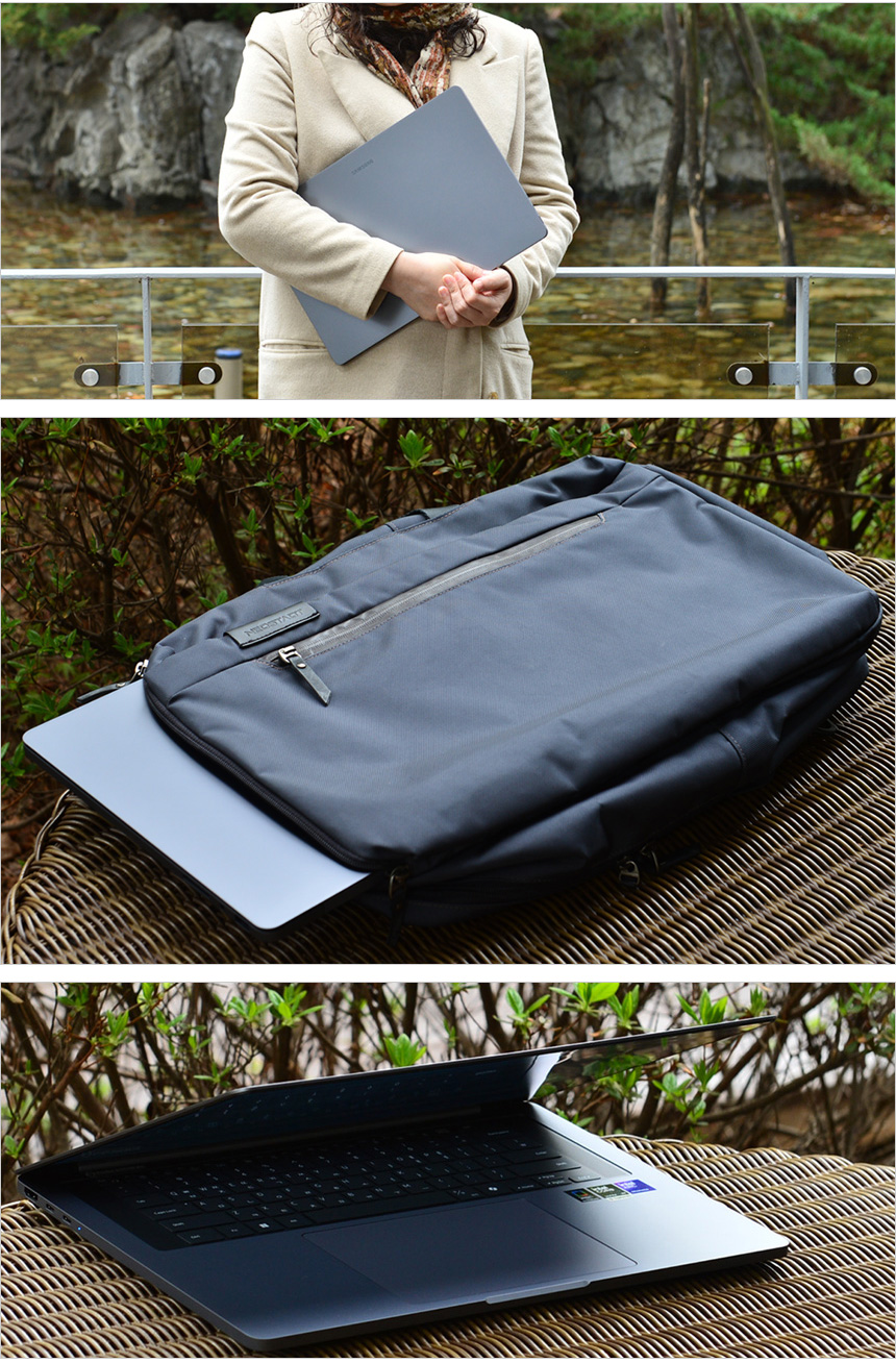 이동시 백팩을 사용해야 하는 일반적인 대화면 노트북들과 달리 슬림 베젤 적용으로 크기를 최소화 했을 뿐만 아니라 상당히 날렵해 일반 가방에 넣고 다니며 사용할 수 있다. 고성능 노트북이 필요하지만 잦은 미팅이나 출장 등으로 휴대가 필수적이라면 좋은 대안이 될 것이다.