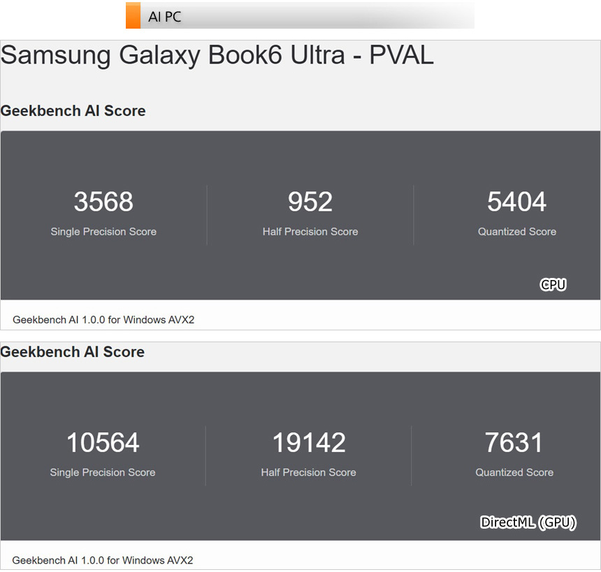 AI 전용 벤치마크 툴을 이용해 AI 성능 테스트를 진행하고 있는 모습으로 AI 에 특화된 CPU가 탑재된 모델답게 높은 스코어를 보여주었다. @ 인텔코어 울트라 9 285H와 비교해 CPU 스코어는 살짝 낮지만 GPU 스코어는 약 2배 정도 높다.