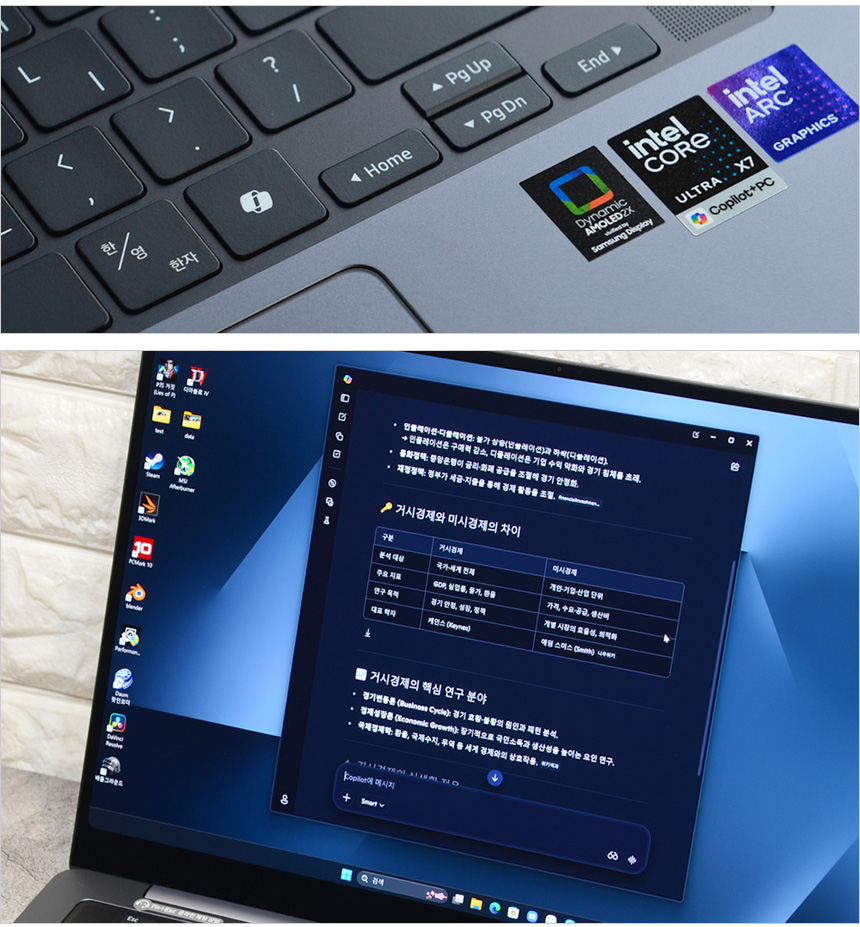 코파일럿이 설치되어 있고 전용키를 지원해 궁금했던 부분을 쉽고 빠르게 학습할 수 있고 AI 가 회의와 영상에서 자동 감지한 음성을 영어로 실시간 번역해 주며 언어의 자막을 표시해 주는 라이브 캡션 기능을 사용할 수 있다.