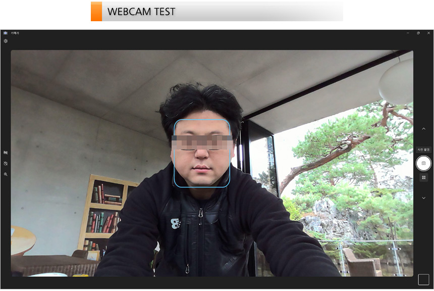 웹캠 화질을 테스트 하고 있는 모습으로 다소 어두운 실내였음에도 디테일이 상당히 뛰어났으며 피부톤이 정돈된 것이 눈에 띈다. 재택근무나 출장 등으로 화상회의가 많은 유저들이라면 유용하게 활용할 수 있을 것이다.