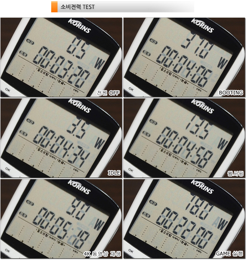 소비전력 테스트를 진행하고 있는 모습으로 (최고성능 모드) 캐주얼한 작업에서는 기존 슬림 노트북과 같이 20W 내외의 낮은 소비전력으로 작동했으며 높은 성능을 필요로 하는 게임에서는 80W 후반까지 소비전력이 올라가는 것을 확인할 수 있었다. (50W 대의 소비전력으로 작동하는 갤럭시북 6 프로 시리즈와는 확연히 다른 모습을 보여주었다.)