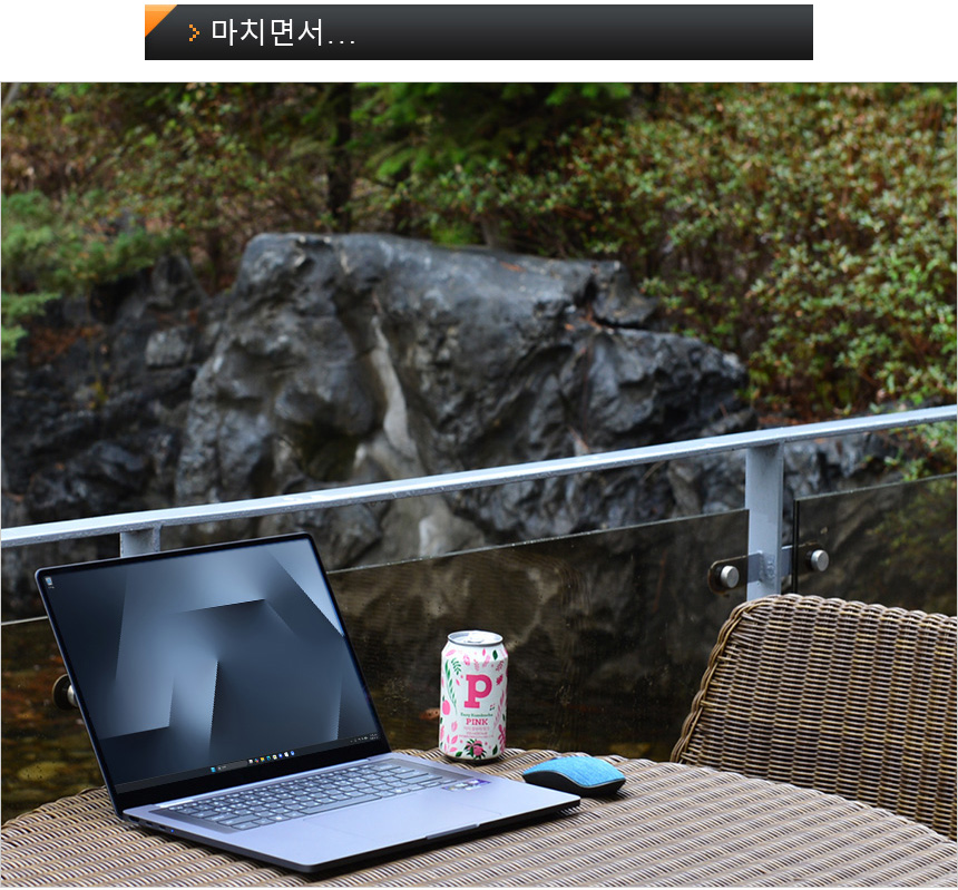 4K 고화질 동영상을 이용해 멀티미디어 테스트를 진행하고 있는 모습으로 16형 대화면에 슬림 베젤 지원으로 높은 몰입감을 경험할 수 있었으며 AMOLED 특유의 진한 컬러감과 베사 HDR 기술 지원으로 깊이감 있는 영상을 즐길 수 있었다. 폭발적인 사운드까지 더해진 노트북으로 동영상 감상용으로 유용하게 사용할 수 있을 것이다.